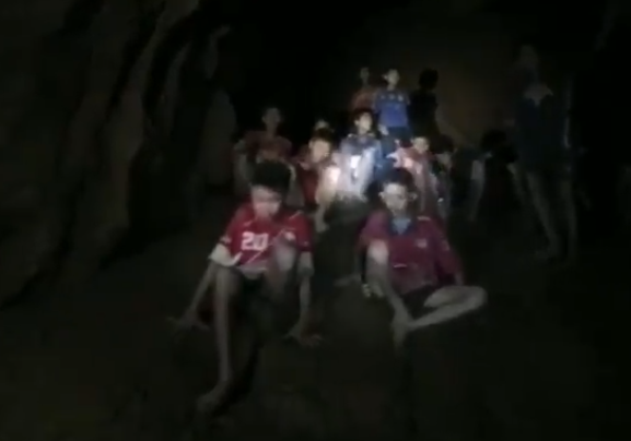 Trang Facebook của lực lượng Đặc nhiệm thuộc Hải quân Hoàng Gia Thái Lan (Navy SEAL) cách đây ít giờ đăng tải video ghi lại thời điểm đội thợ lặn tìm thấy 12 cậu bé và huấn luyện viên đội bóng mất tích.