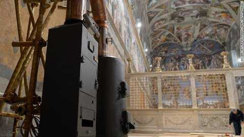 | 2 bếp lò để báo hiệu bằng khói bên trong nhà nguyện Sistine |