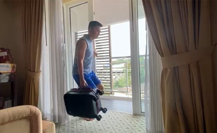 Video Kiatisak tập luyện với vali trong phòng cách ly