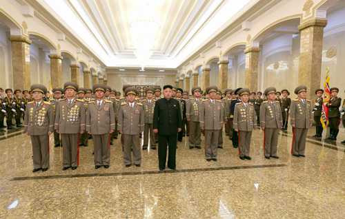 Nhà lãnh đạo Kim Jong-un và các tướng lĩnh tại Cung điện Kumsusan