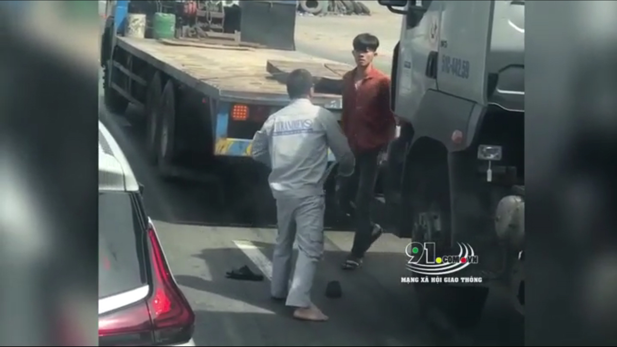 Sau pha va chạm giao thông, hai tài xế cầm đao và nhị khúc côn lao vào ẩu đả trên tuyến quốc lộ 1A, đoạn qua Dĩ An, tỉnh Bình Dương.