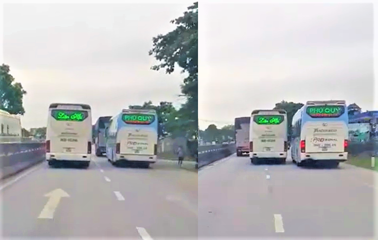 Mạng xã hội vừa lan truyền video clip ghi lại cảnh 2 xe khách chèn ép trên quốc lộ 1A khiến nhiều người bức xúc. Hành vi này của lái xe là coi thường tính mạng của hàng chục hành khách trên xe.