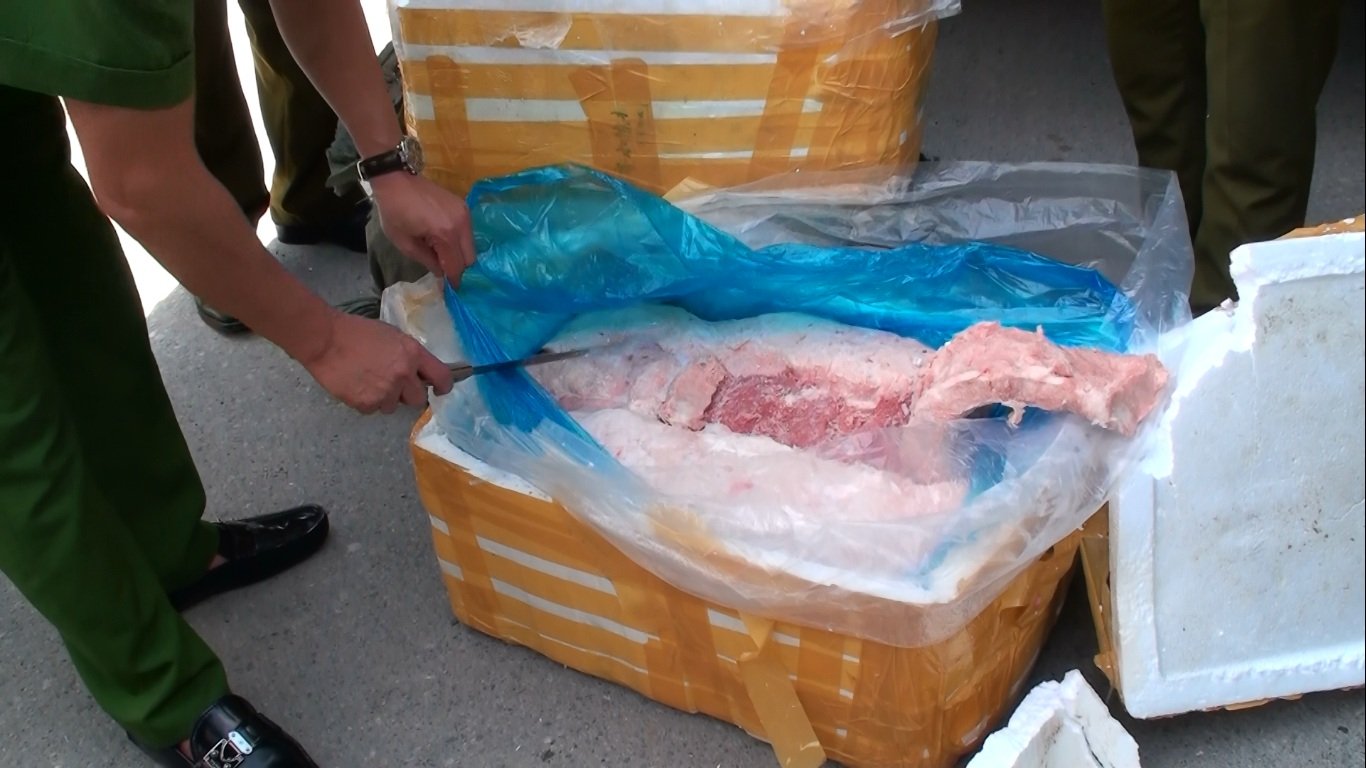 Hơn 10 tấn nầm lợn đông lạnh không rõ nguồn gốc đang được vận chuyển đi tiêu thụ thì bị lực lượng chức năng Hà Nội thu giữ.