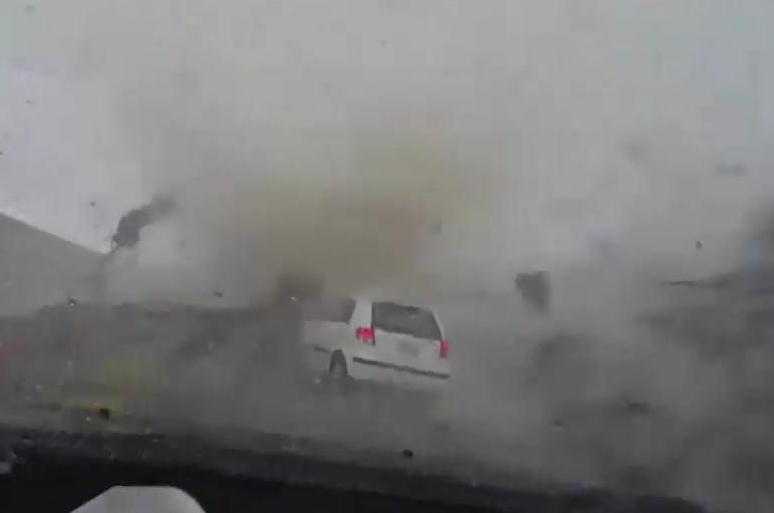 Camera hành trình trên một ô tô ở Đài Loan đã ghi lại khoảnh khắc vòi rồng cuốn bay một chiếc ô tô khác đang chạy phía trước khi siêu bão Soudelor quét qua.