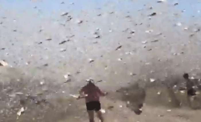 Video: Kinh hoàng cảnh tượng châu chấu bay rợp trời ở Nga