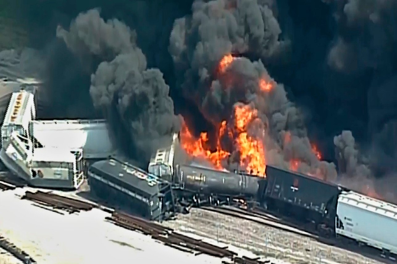 Cảnh quay được ghi lại tại hiện trường cho thấy ngọn lửa lớn và những đám khói bốc lên không trung. Tàu được cho là đang mang một chất lỏng dễ cháy có tên là methyl isobutyl ketone cho công ty vận tải Union Pacific.