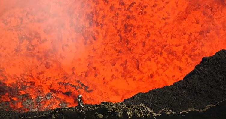 Video: Kinh ngạc nhà thám hiểm đứng ngay bên miệng núi lửa sôi sục