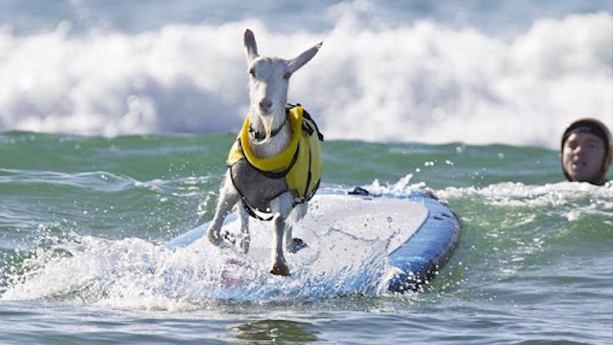 Một vận động viên lướt sóng người Mỹ đã huấn luyện những con dê của mình có thể lướt sóng, nhiều người chứng kiến cảnh tượng trên tỏ ra kinh ngạc và thích thú.