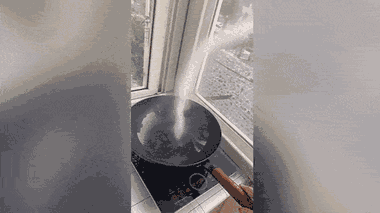 Một người phụ nữ tại TP Đại Liên (Liêu Ninh, Trung Quốc) bất ngờ nhìn thấy khói hình lốc xoáy bốc lên trong chảo khi cô đun nóng dầu để nấu ăn.
