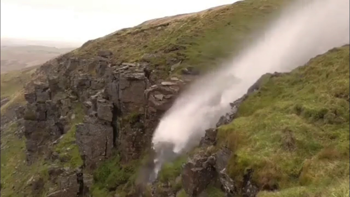Video: Kỳ lạ thác nước chảy ngược trong gió bão ở Australia