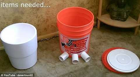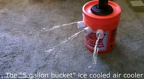 Những nguyên liệu cần chuẩn bị gồm có: một chiếc quạt, một xô nhựa, một lớp lót bằng nhựa dẻo polystyrene, ống nhựa PVC và nước đá.