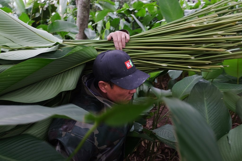 Thời điểm trước Tết nguyên đán, người dân thôn Tràng Cát (xã Kim An, huyện Thanh Oai, Hà Nội) lại tất bật thu hoạch lá dong phục vụ nhu cầu gói bánh chưng của người dân cả nước.