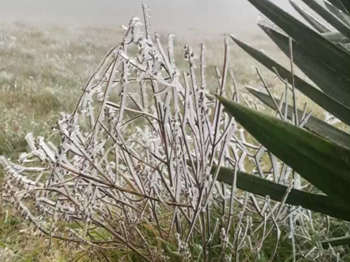 Sáng 8/1, đỉnh núi Mẫu Sơn (Lạng Sơn) xuất hiện băng giá với nhiệt độ âm 1,4 độ C.