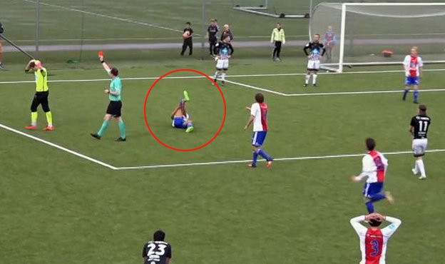 KFUM và Asker gặp nhau tại giải PostNord League, hạng Ba của Na Uy. Khi tỷ số đang là 3-2 nghiêng về phía đội khách Asker, tiền đạo Yassin Rfiffi của đội chủ nhà có được cơ hội ghi bàn thắng gỡ hòa khi băng vào vòng cấm đối mặt với thủ thành Kenneth Udjus.