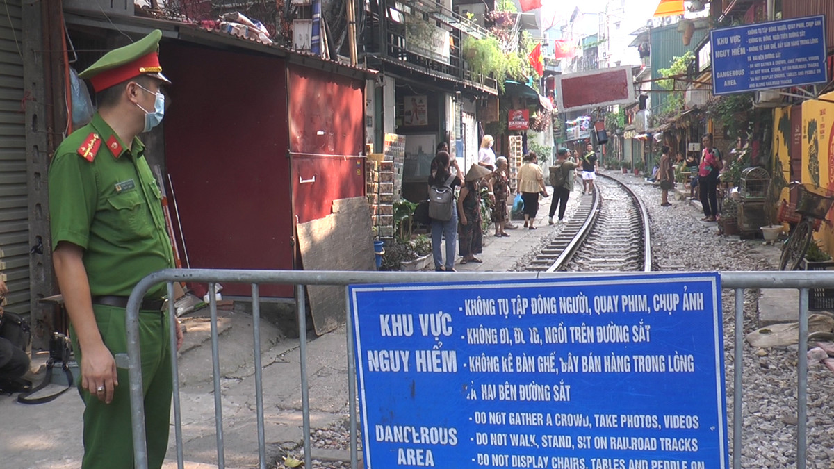 Video: Lập chốt cứng ngăn du khách vào 'phố cà phê đường tàu' ở Hà Nội