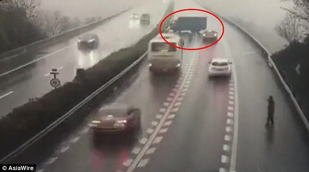 Vụ việc xảy ra vào ngày 18/3 trên một tuyến cao tốc ở Trùng Khánh. Trong video trích xuất từ camera an ninh, chiếc xe tải đang di chuyển với dòng xe trên làn đường cao tốc thì quay đầu.