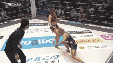 Võ sĩ Rena Kubota Nhật Bản đã có một đòn gối cực mạnh khiến đối thủ gục ngã xuống sàn đấu để giành chiến thắng knock-out.