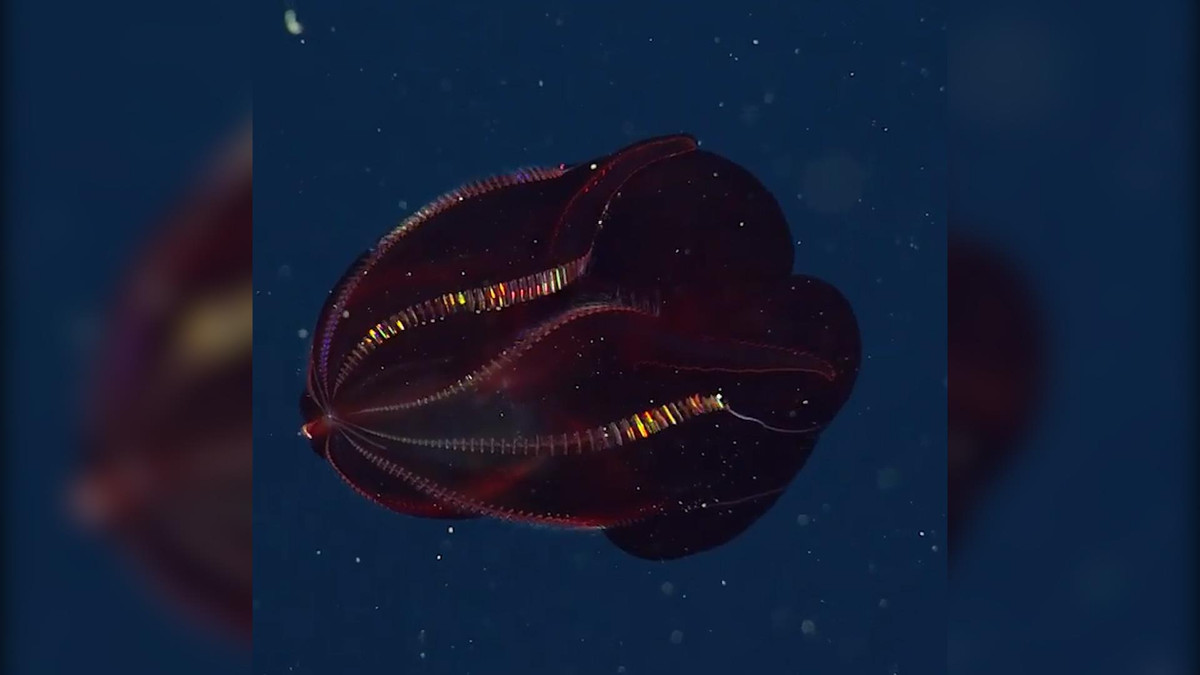 Loài sứa lược tên khoa học: Ctenophores, sống ở độ sâu từ 300 đến 1.000m, chúng có lông bơi lấp lánh màu sắc với chiều dài cơ thể tối đa 16cm.