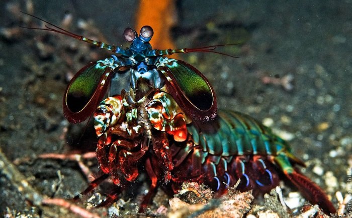 Cú vung càng với sức mạnh lớn gấp 100 lần trọng lượng cơ thể của tôm tít công có thể làm vỡ kính bể cá trong nháy mắt.