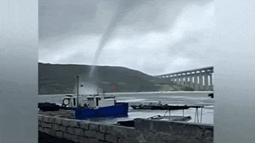 Cột lốc xoáy lớn di chuyển nhanh trên mặt biển, tiến gần một bến cảng tại Pingtan (Phúc Kiến, Trung Quốc) khiến các tàu thuyền nhanh chóng di chuyển.