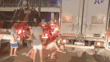 Nhóm thanh thiếu niên xúm lại chiếc xe tải đang cố nhích lên giữa đám tắc đường, nhanh chóng cướp chiếc ắc-quy rồi đi mất ở Manila.