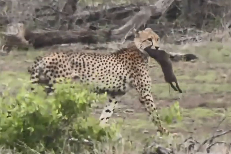 Sau chốc lát truy đuổi, mỗi con báo săn đều bắt được một con lợn rừng nhỏ và ăn thịt.