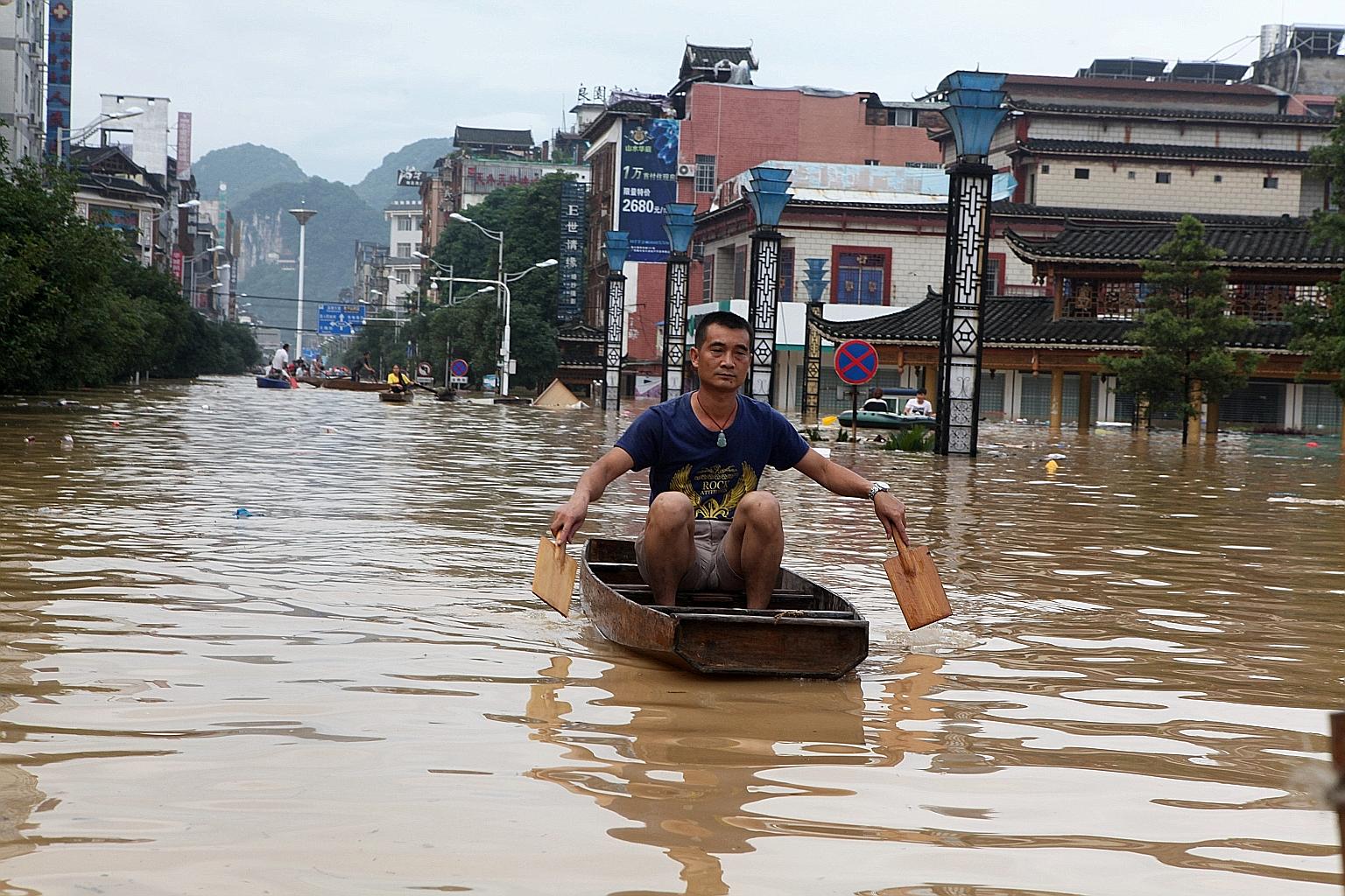 Do lũ dâng cao, các nhân viên cứu hộ phải dùng dây thừng và ca nô để cứu những người bị mắc kẹt. Cơ quan khí tượng trung ương Trung Quốc dự báo, các tỉnh miền Nam nước này sẽ tiếp tục có mưa trong những ngày tới.