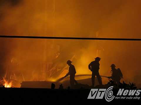 (VTC News) - Sau nhiều giờ xảy ra vụ hỏa hoạn, mặc dù lực lượng Cảnh sát PCCC điều động hàng chục xe cứu hỏa và hàng trăm chiến sỹ đến dập lửa, tuy nhiên đám cháy vẫn lan rộng và thiêu rụi hàng ngàn mét vuông nhà xưởng.