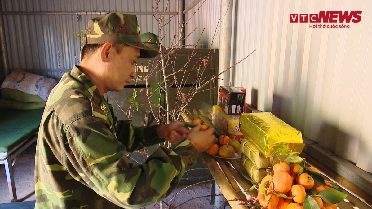 Các cán bộ, chiến sĩ tại chốt kiểm soát dịch COVID-19 khu vực cột mốc số 5, Đồn Biên phòng A Pa Chải (Điện Biên) chuẩn bị đào, mâm ngũ quả đón Tết Nguyên Đán.
