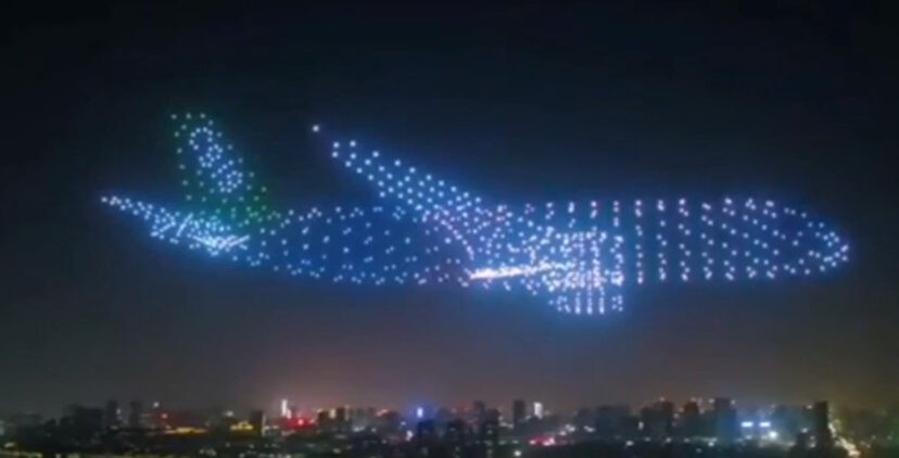 Du khách tham dự Triển lãm hàng không Nam Xương 2019 ở Trung Quốc có dịp được thưởng thức màn trình diễn ánh sáng mãn nhãn khi hàng trăm thiết bị bay không người lái tạo hình thành những chiếc máy bay chở khách, trực thăng và máy bay chiến đấu khổng lồ.