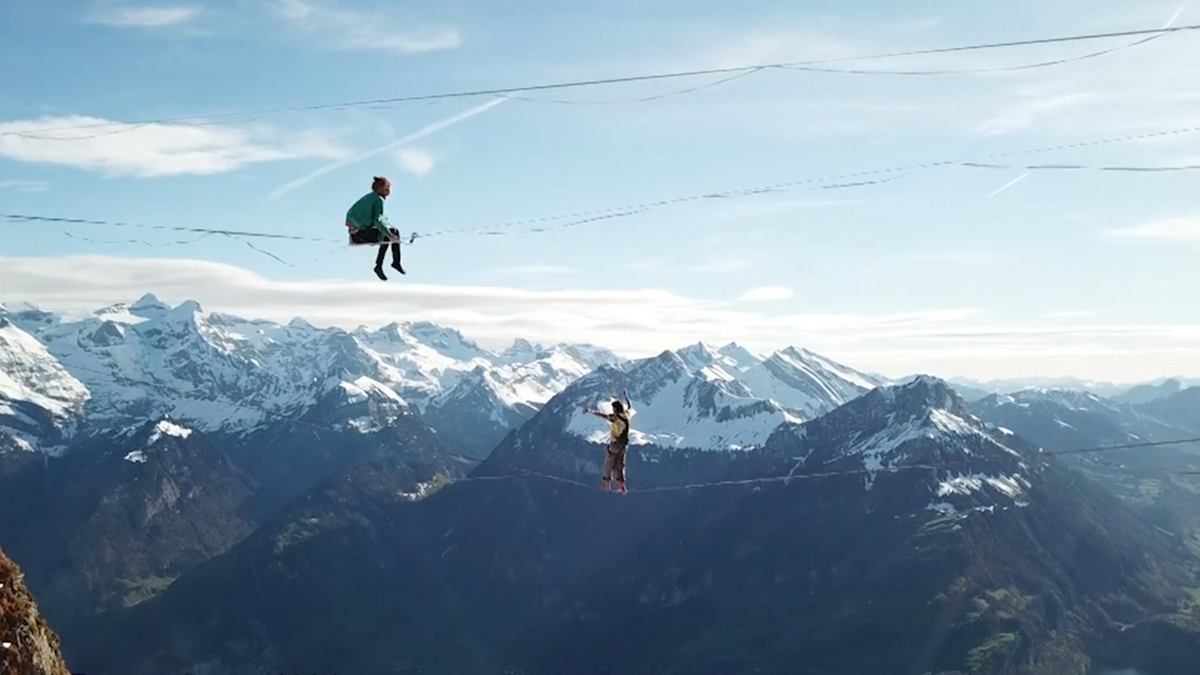 Samuel Volery và nhóm bạn biểu diễn nhào lộn thăng bằng trên độ cao 1.500m ở hồ Lucerne, Thụy Sĩ.