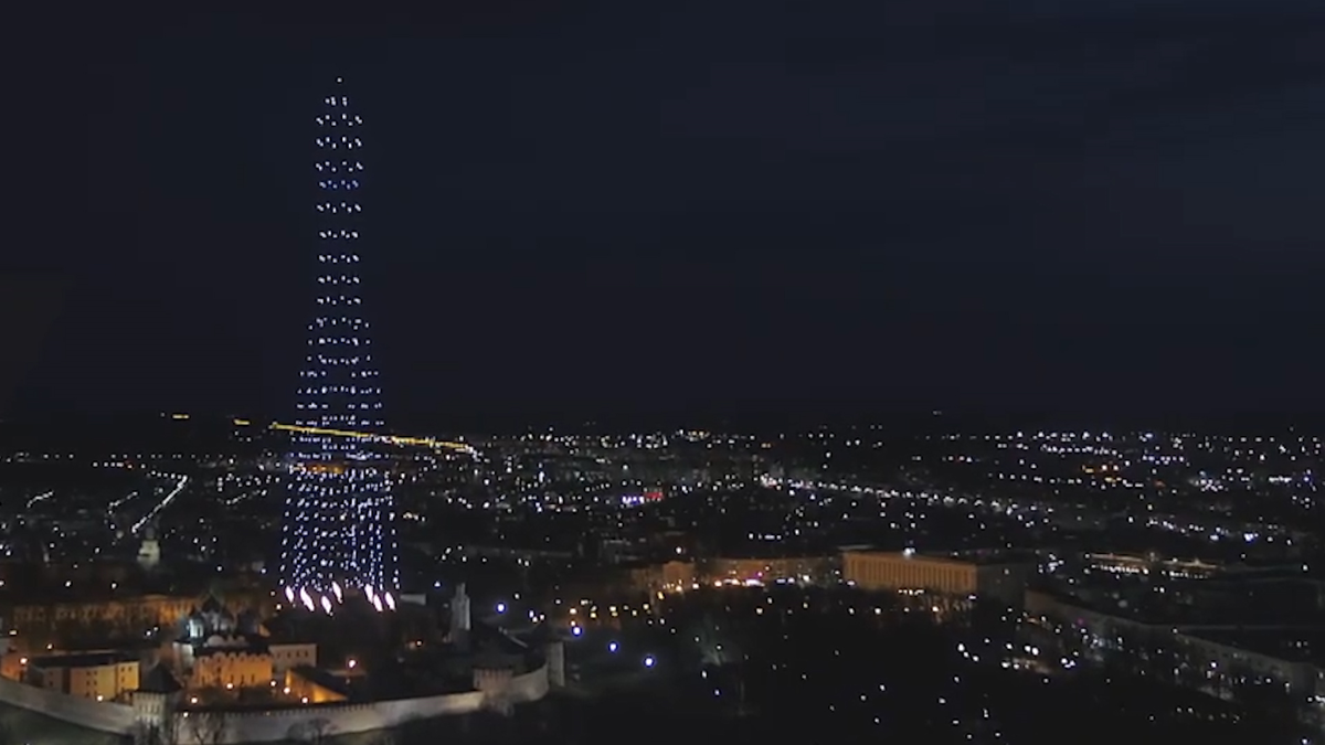 500 máy bay không người lái tạo hình tên lửa Soyuz, vệ tinh đầu tiên của Nga Sputnik1, trạm vũ trụ quốc tế nhân dịp 60 năm ngày Du hành vũ trụ tại Novgorod, Nga.