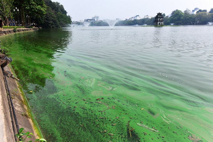 Nước Hồ Gươm đổi màu do tảo độc