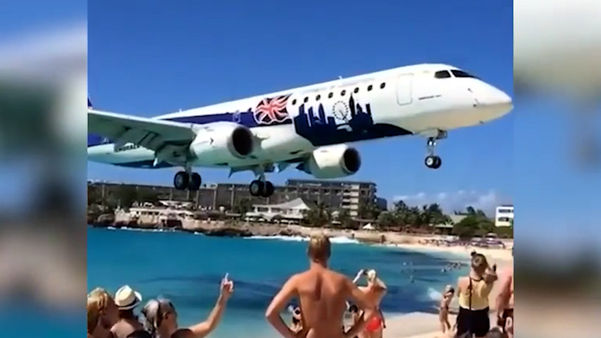 Chiếc máy bay Embraer 190 đáp xuống sân bay quốc tế Princess Juliana chỉ cách đầu người trên bãi biển khoảng 10 – 20 m, khiến không ít du khách hoảng sợ.