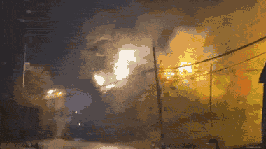 Gió lớn khiến một máy biến áp phát nổ, dây điện phát ra tia lửa cháy lan qua cây cối xung quanh tại Brockton (Massachusetts, Mỹ).