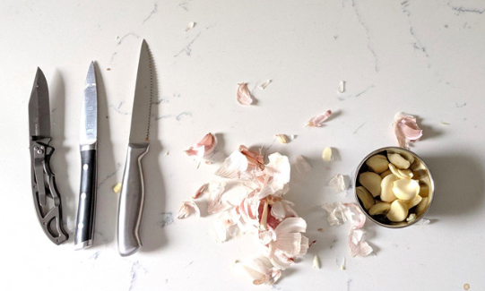 Theo đó, thay vì tách từng tép tỏi ra khỏi củ, rồi bóc vỏ từng tép, VPestineZ cắm thẳng đầu dao vào gần giữa các tép, sau đó nhẹ nhàng lôi từng tép ra ngoài, không dính vỏ.