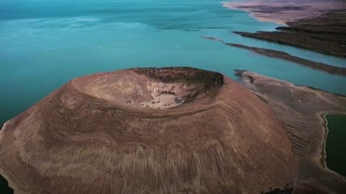 Video: Miệng núi lửa khổng lồ nổi giữa hồ nước ở Kenya