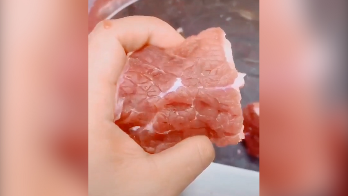 Đoạn clip dài 16 giây, được tài khoản TikTok Butcher Joshee đăng tải, ghi lại cảnh một miếng thịt lợn tươi đang "co giật”.