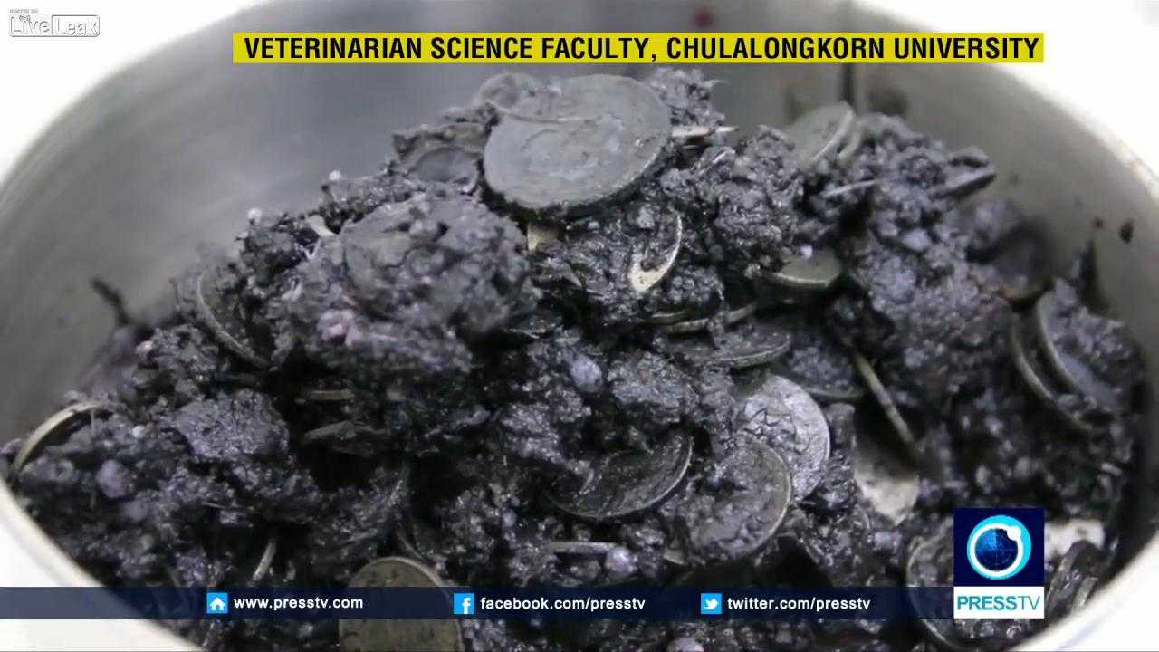Sự việc xảy ra tại Thái Lan. Được biết, những đồng xu do con người ném xuống hồ để cầu may và con rùa đã nuốt nhầm trong nhiều năm.