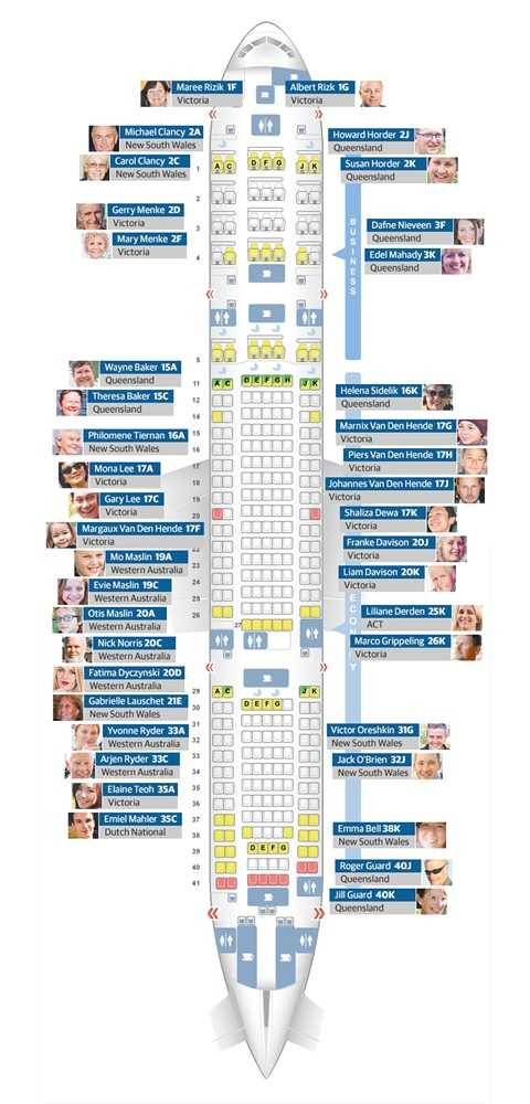 | Vị trí ghế hành khách Úc trên chuyến bay MH17 - Nguồn: heraldsun |