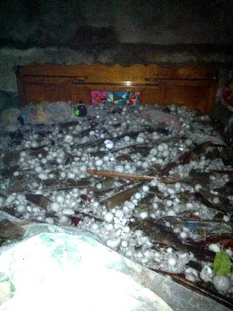 Mưa đá phủ đầy giường ngủ của một gia đình ở Lào Cai
