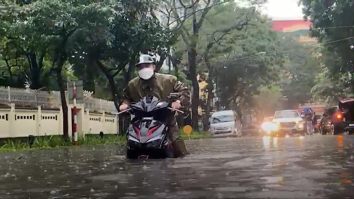 Video: Mưa lớn, đường phố Hà Nội ngập sâu trong nước