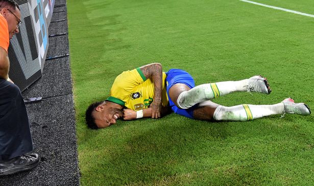 Tiền đạo mang áo số 10 của Brazil lăn lộn một lúc, như thói quen của anh trong những lần nằm sân khác. Dù vậy anh không gặp chấn thương đáng ngại và vẫn có thể thi đấu tiếp.