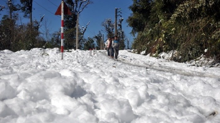 Khoảng 22 giờ, ngày 10/1, tại nhiều thôn Phan Cán Sử, Phìn Hồ... của xã Y Tý huyện Bát Xát, Lào Cai đã xuất hiện tuyết rơi, phủ trắng nhiều con đường, làng bản.