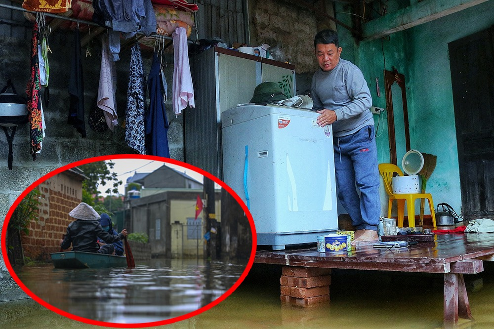 Video: Ngập lụt ở ngoại thành Hà Nội, dân phải dùng thuyền, kê ván để di chuyển
