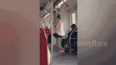 Video: Ngẫu hứng tập xiếc, cô gái treo mình lơ lửng trong tàu điện ngầm