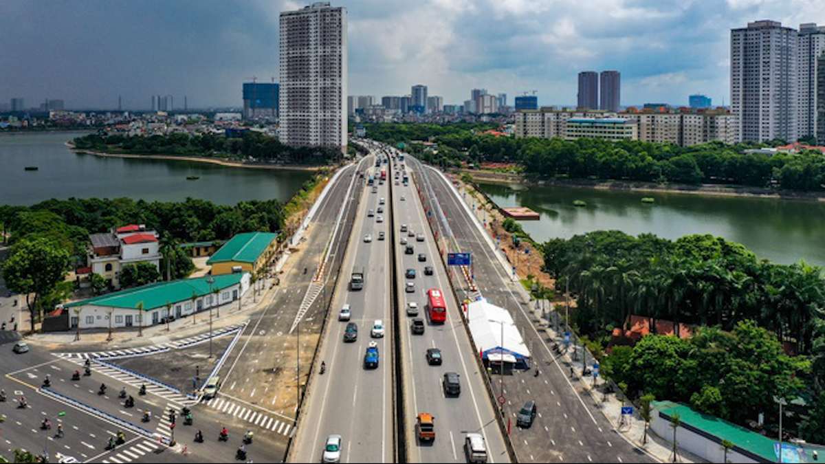 2 cầu đi thấp qua hồ Linh Đàm với tổng chiều dài cầu hơn 540m, chiều rộng mỗi cầu 13m, chính thức thông xe vào sáng 6/10.