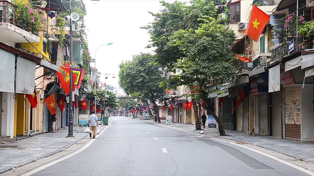 Sáng 2/9, trên các tuyến phố tại Hà Nội và TP.HCM vắng bóng người do trong thời gian giãn cách xã hội.