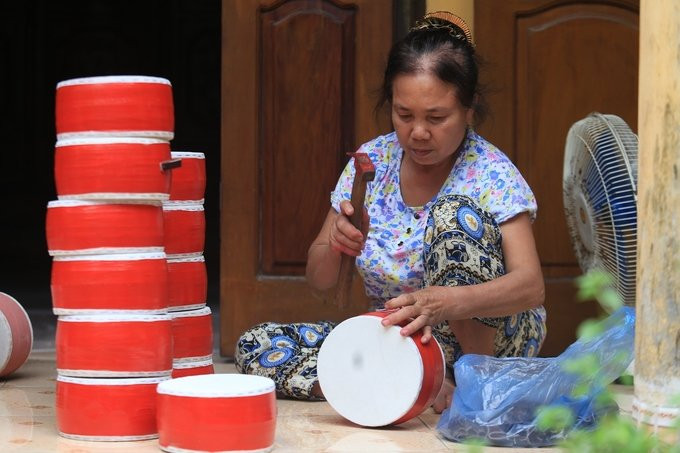 Gần chục hộ gia đình ở thôn Hảo, xã Liêu Xá (Yên Mỹ, Hưng Yên) chia nhau các công đoạn làm trống Trung thu truyền thống, cung cấp hơn 100.000 sản phẩm nhưng vẫn không đủ để bán.