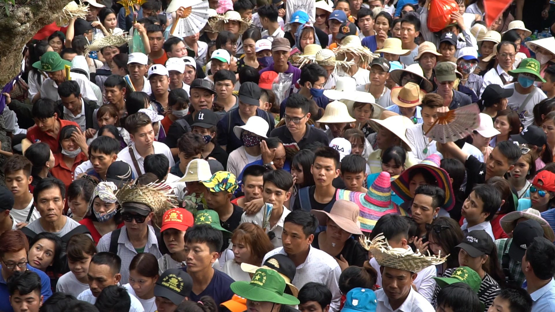 Trước ngày khai hội, hàng vạn du khách đổ về cùng một thời điểm khiến dòng người phải nhích từng bước một để vào được động Hương Tích (Chùa Hương, Mỹ Đức, Hà Nội).
